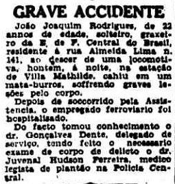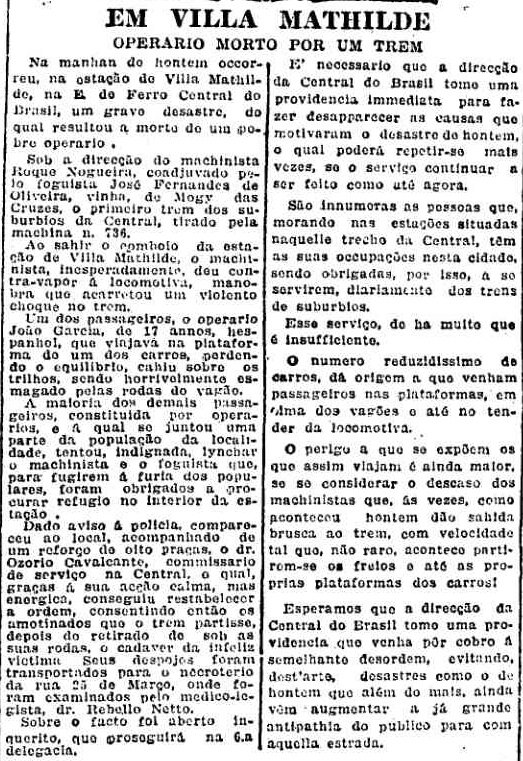anos 1920 teria acontecido um desastre com um trem da Central,